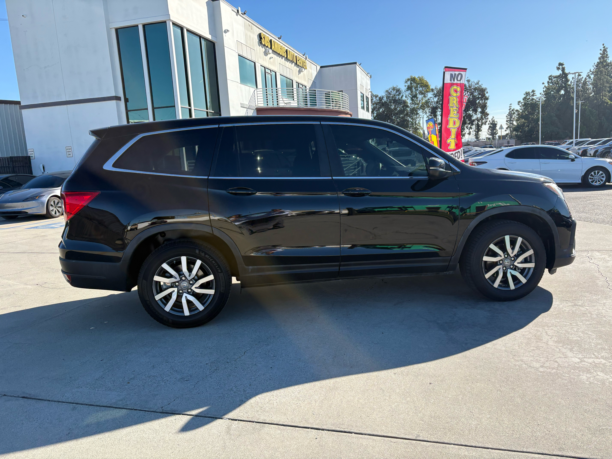 Stand out on the road with the Pilot's striking black exterior, complete with chrome accents and sleek lines. You'll also enjoy modern conveniences like an express open/close sunroof, LED headlights, and a backup camera for added safety. With 7 speakers throughout the cabin, you can enjoy your favorite tunes on every drive.