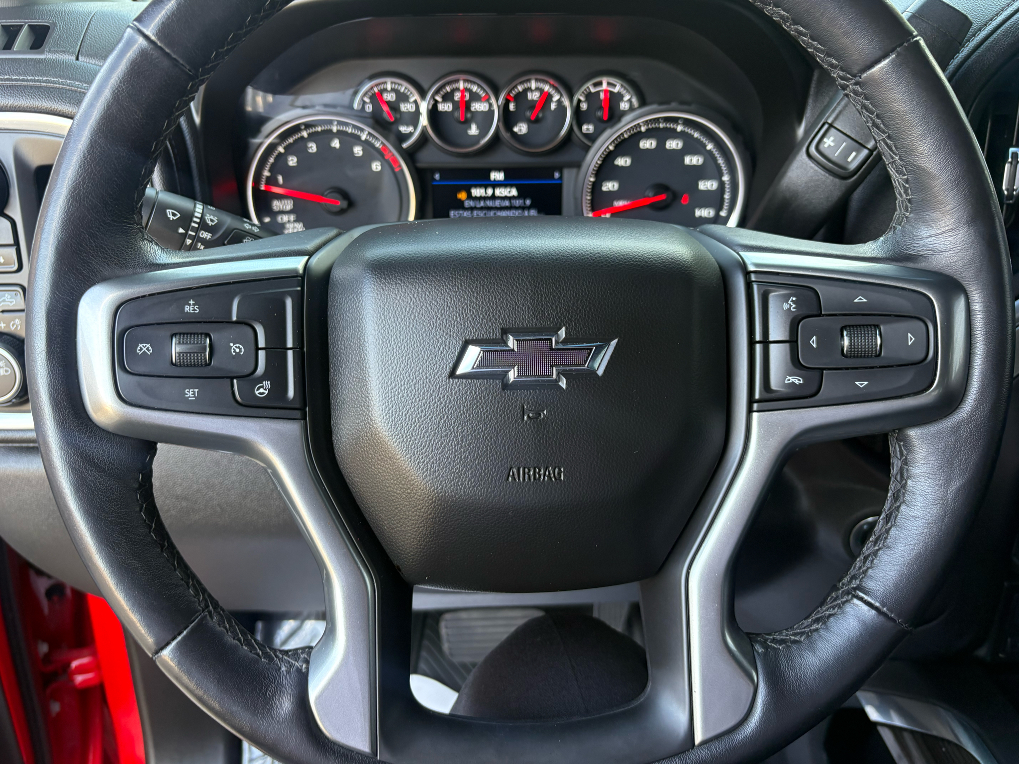 With a rugged Durabed to haul your gear, this beast can handle a GVWR of up to 7000 lbs. From its High gloss Black accents to the LED lighting, this Silverado is as stylish as it is capable. Inside, the cabin is designed for both comfort and utility, featuring a leather-wrapped steering wheel with audio controls, a 6-speaker audio system, and convenient floor-mounted storage options. Safety is paramount with airbags all around, StabiliTrak stability control, and Hitch Guidance for seamless trailering.